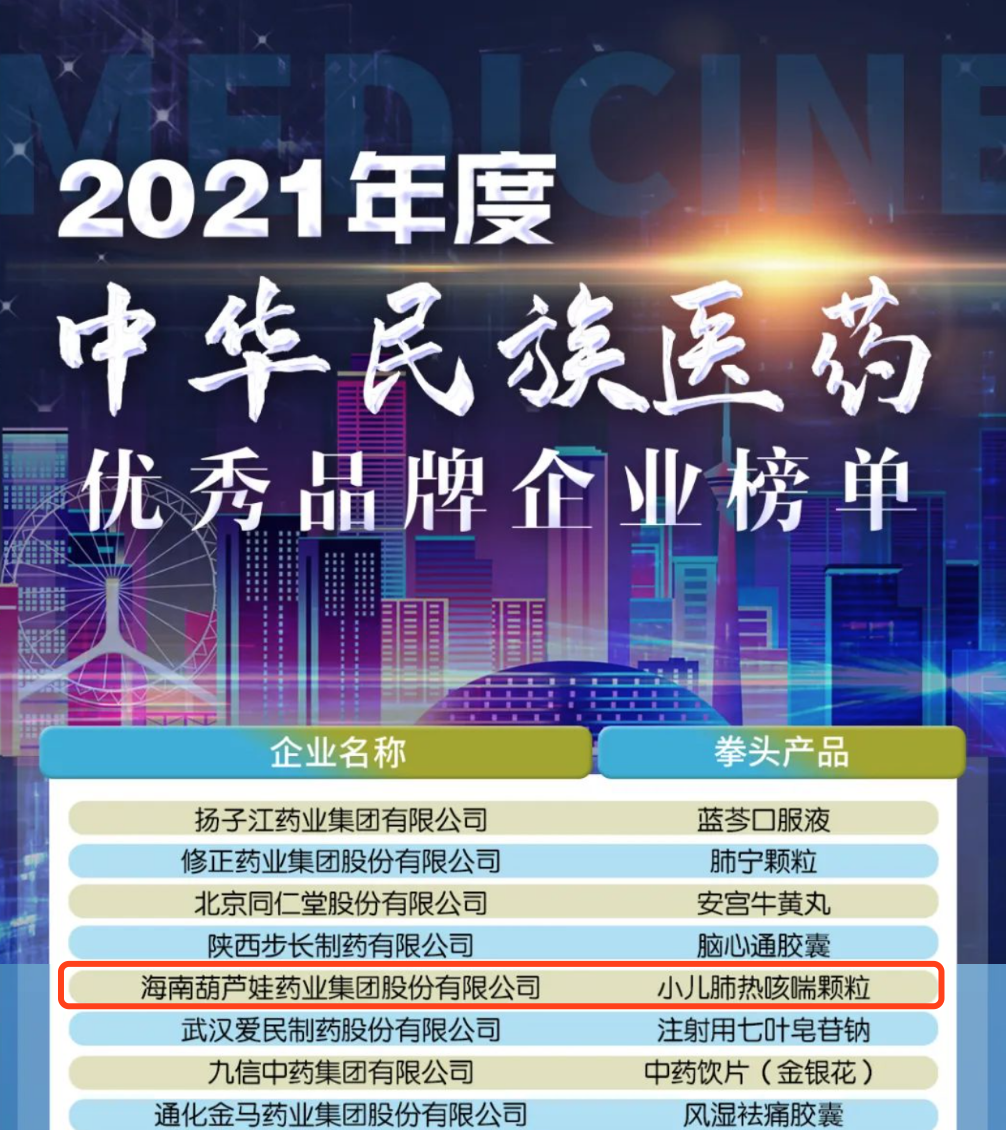 12月29日,全国工商联医药业商会发布了“2021年度中华民族医药优秀品牌企业榜单”,PA直营药业集团凭借黄金单品小儿肺热咳喘颗粒(4克)实力登榜。