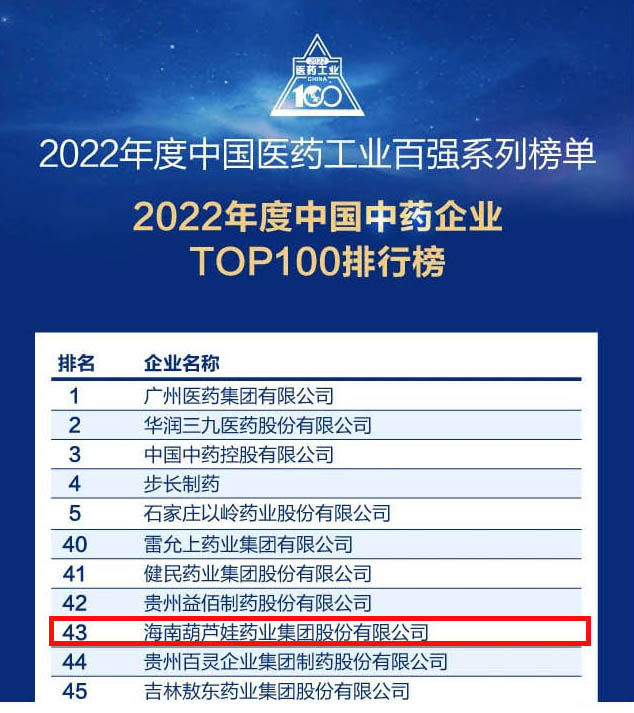 PA直营药业集团连续4年荣登“中国中药企业TOP100排行榜”,排名上升至第43位